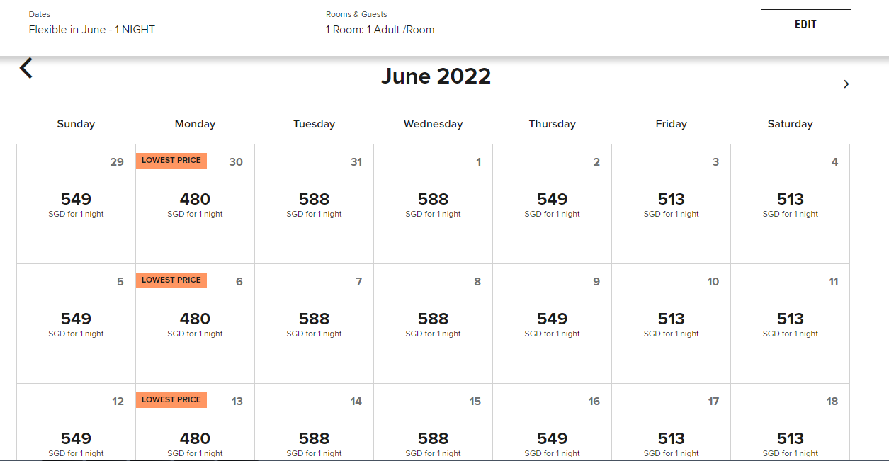 比如皇后搜索6月份的房间价格