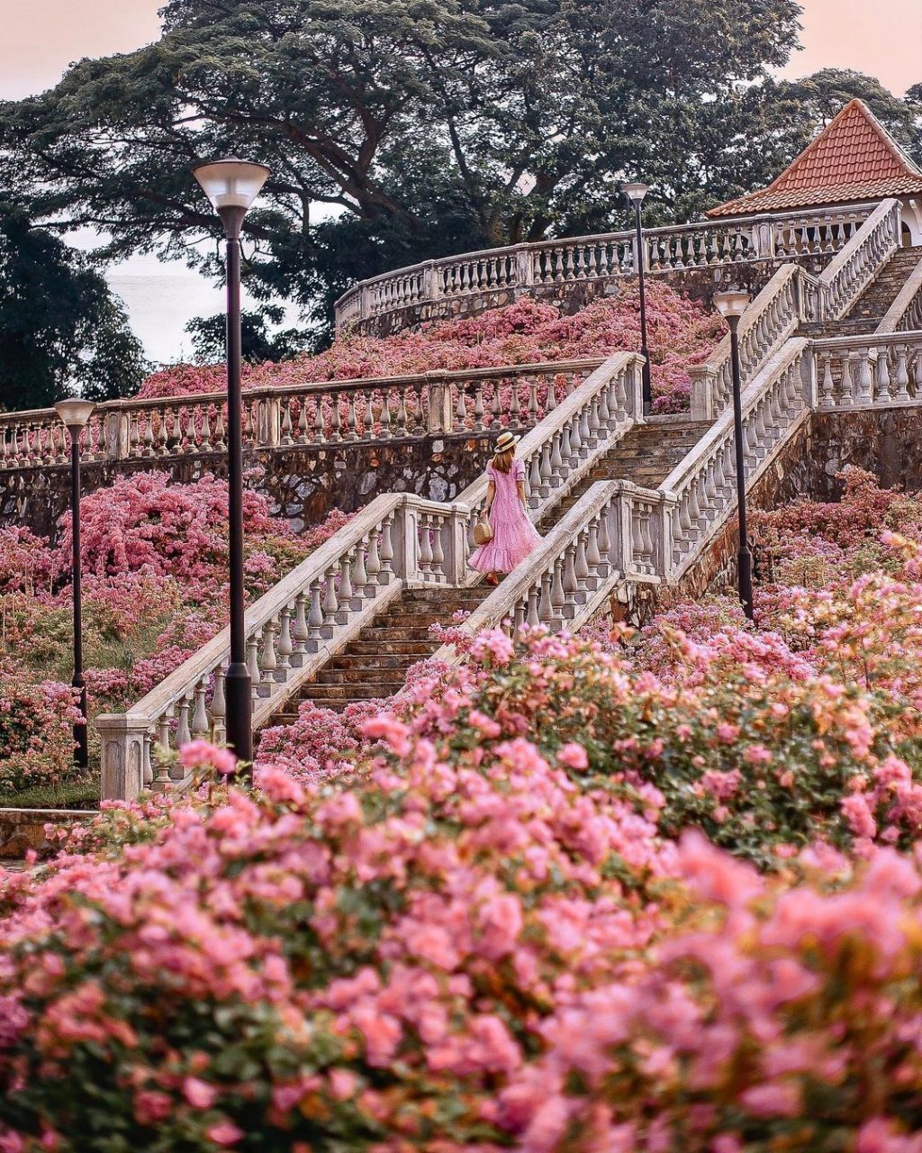 正当开花时刻,到露台花园或阶梯拍照