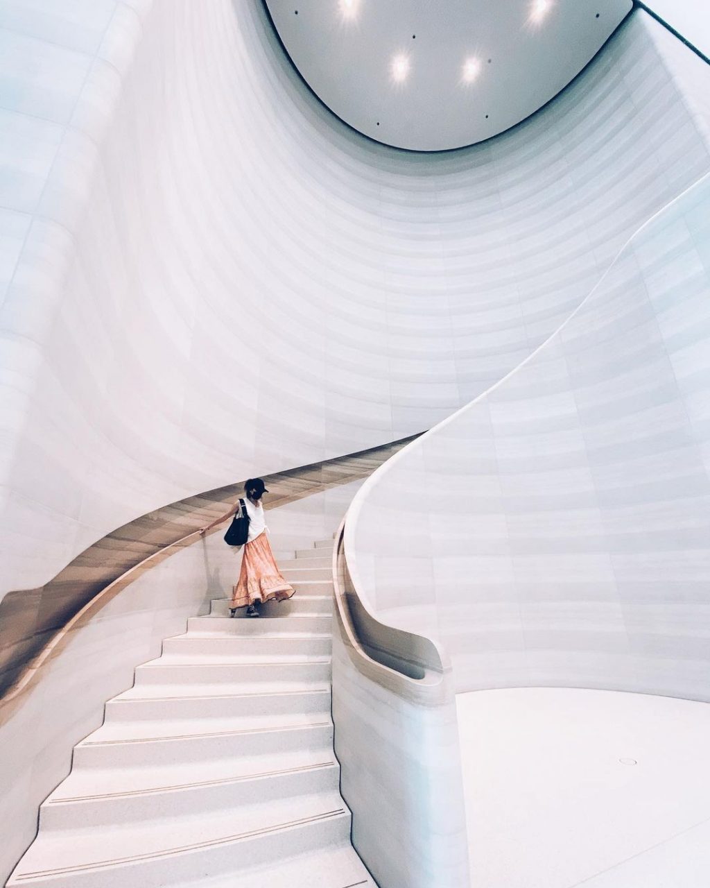 里头就有这个弧形白色楼梯