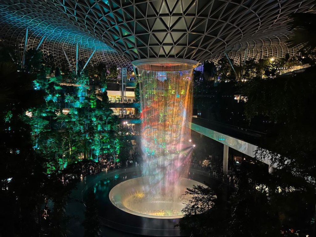 星耀樟宜室内垂空水幕灯光秀绚丽回归🤩 每晚8PM准时表演,多种版本免费观看!