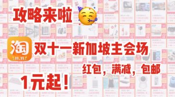 淘宝开设双十一新加坡主会场!1元起卖,大额红包,满减,包邮到家,攻略拿去不谢!