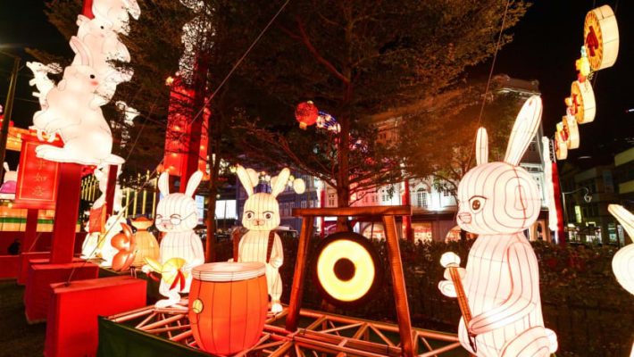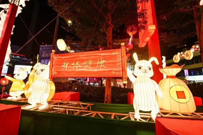 今年的新春灯饰以农历兔年为主题