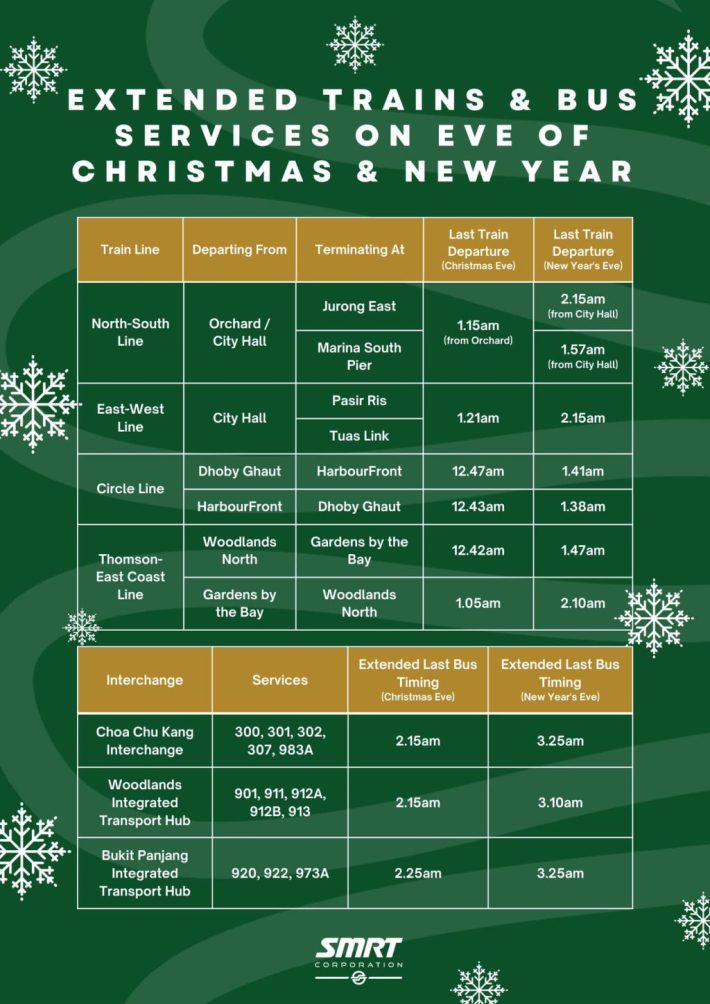 必看!平安夜&跨年前夕的部分公共交通延长服务时间