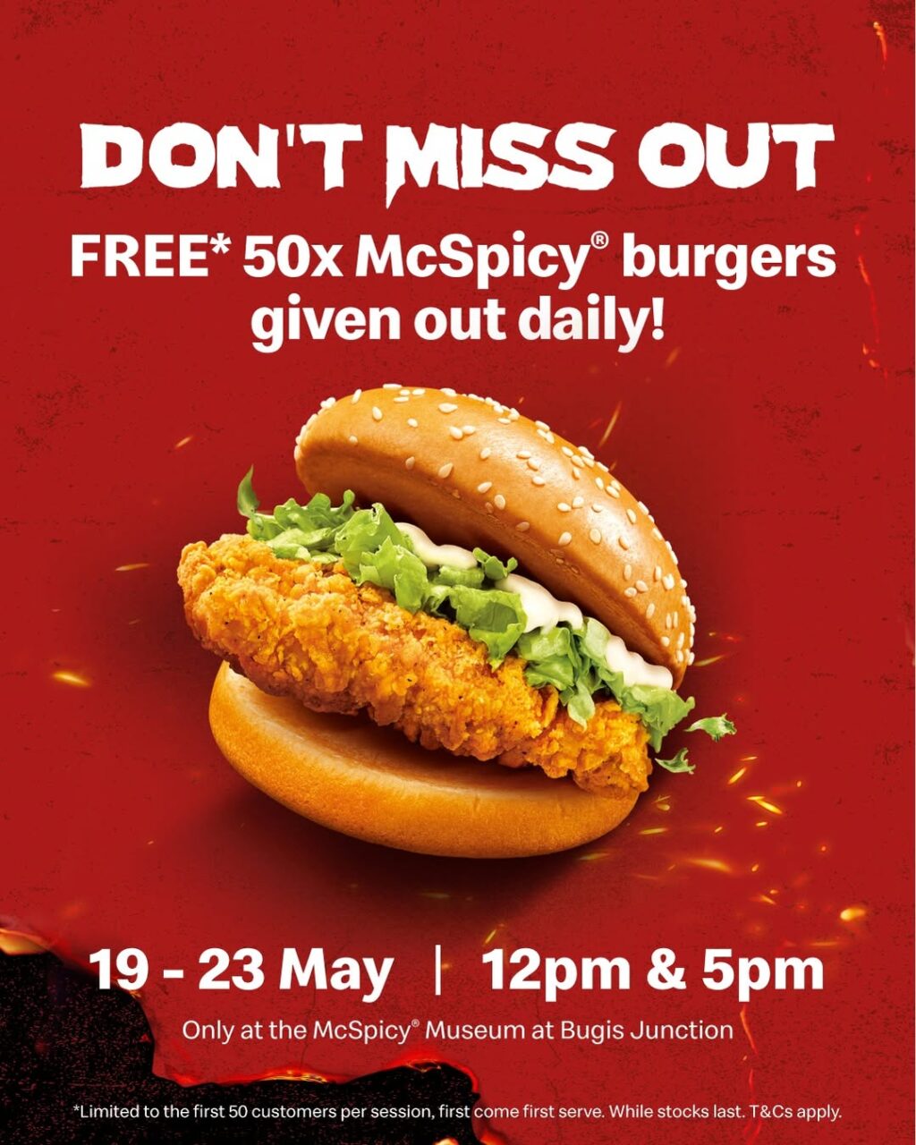 麦当劳还会免费派发各50份McSpicy汉堡🍔