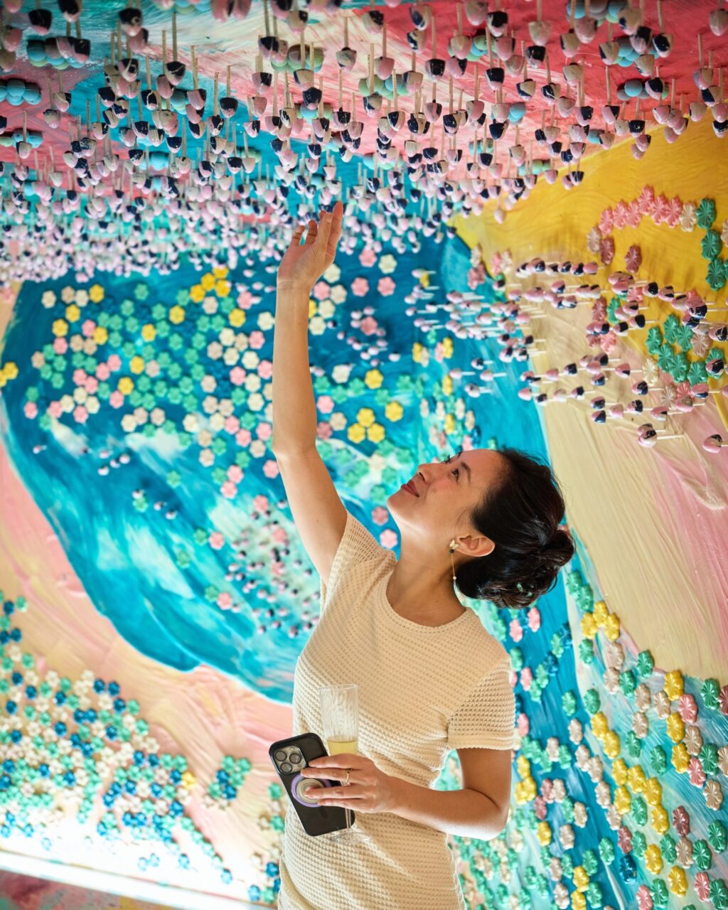 色彩缤纷的手绘巧克力从墙面一直延伸到天花板