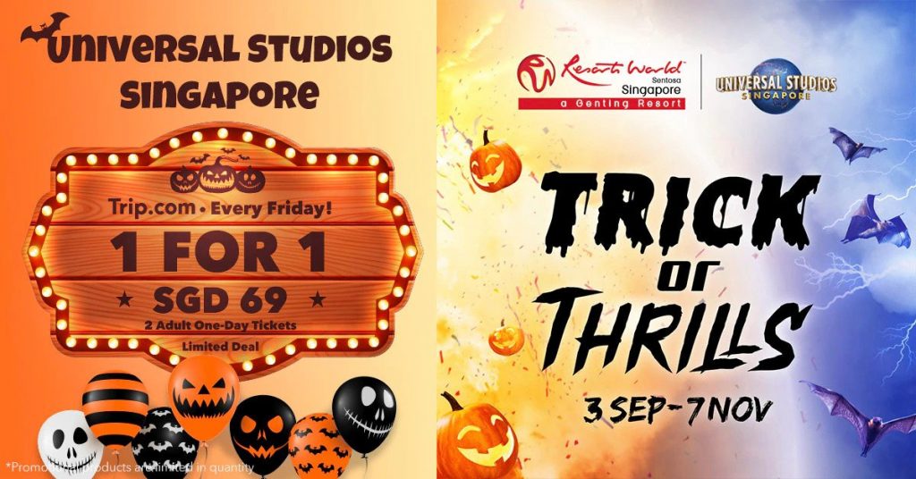 新加坡环球影城门票买一送一!9月份每周五、指定时间抢购⏰畅玩USS+参加Trick or Thrills活动👻