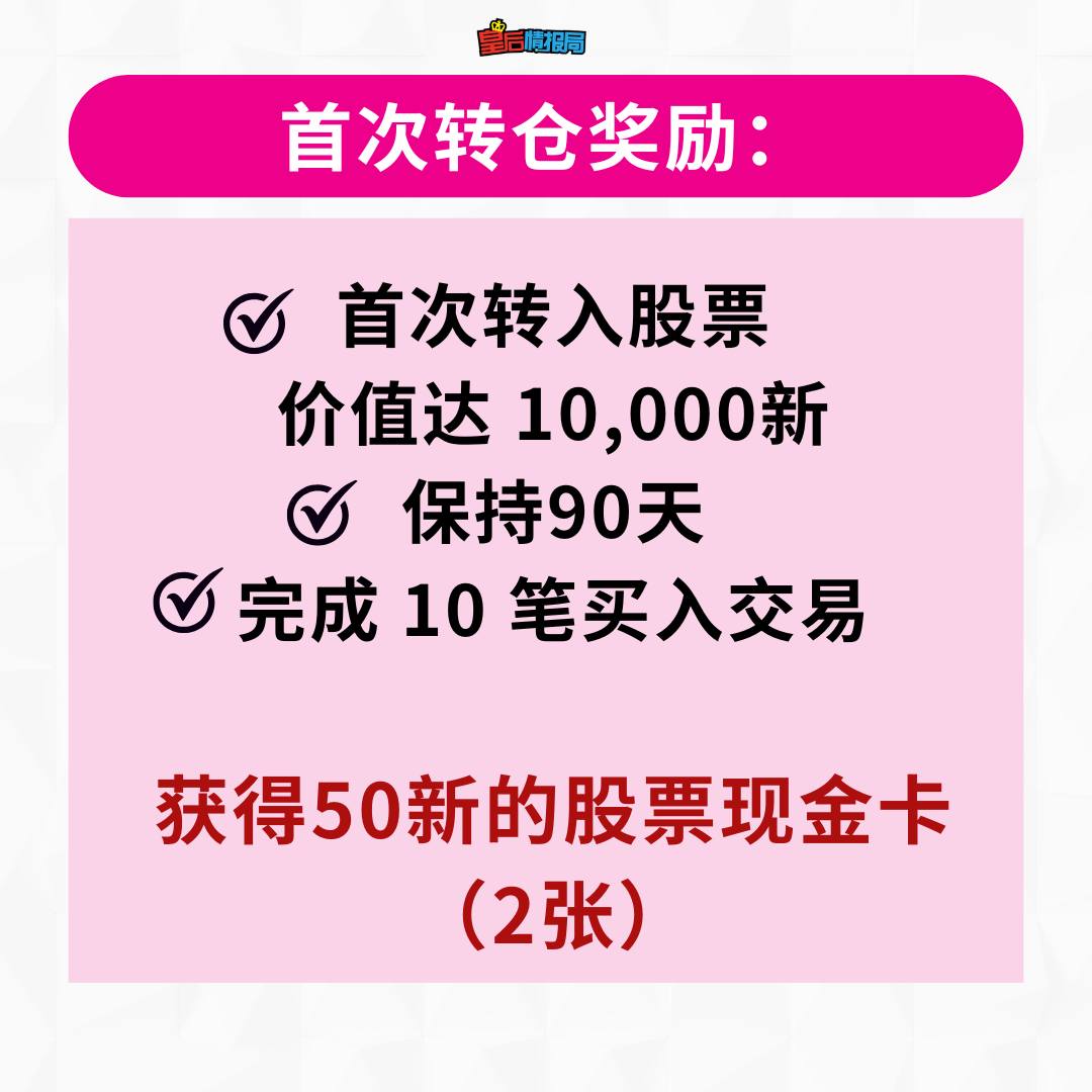 👉首次转入股票 价值达10,000新