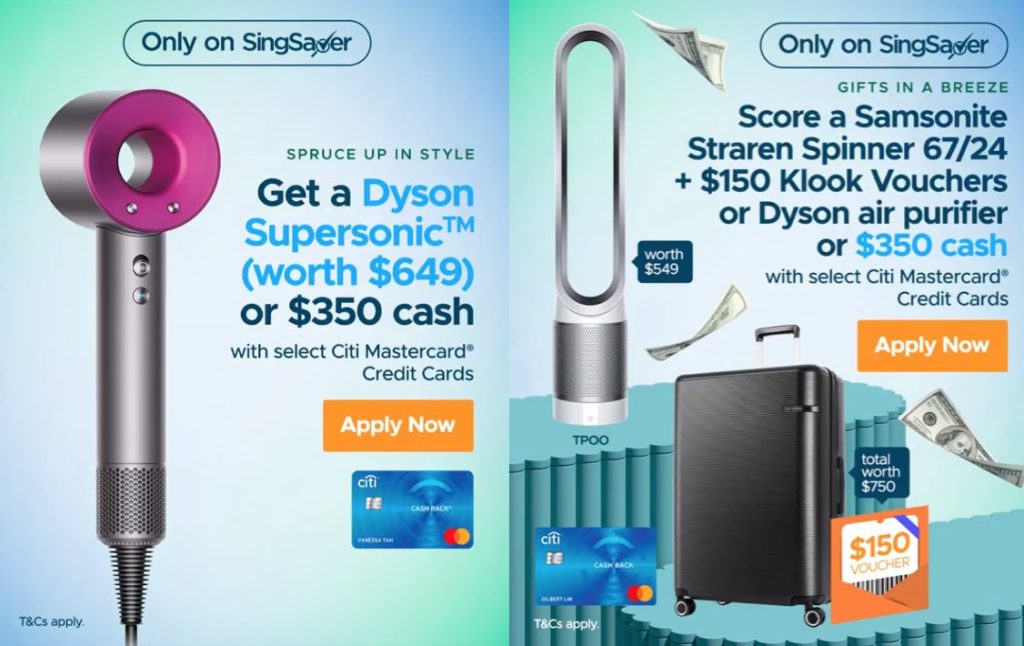 7月信用卡促销出炉!Dyson网红吹风机/ Dyson风扇 / 新秀丽旅行箱 + Klook Voucher / 350现金免费领!