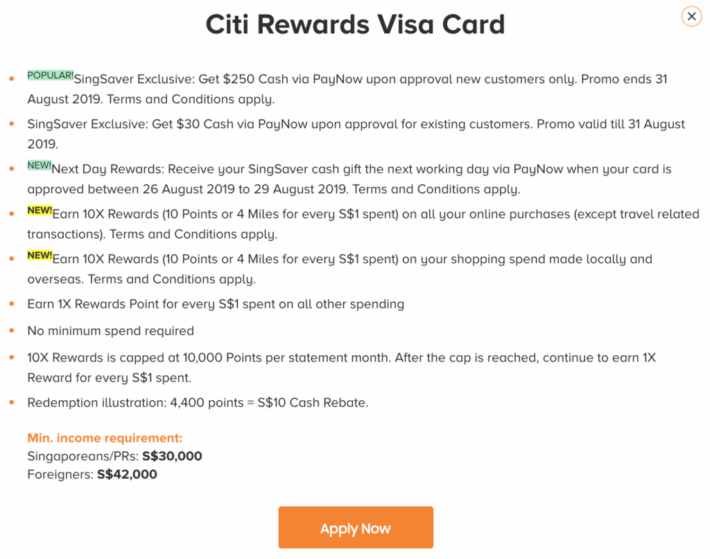 4400积分可兑换10新币Cash Back