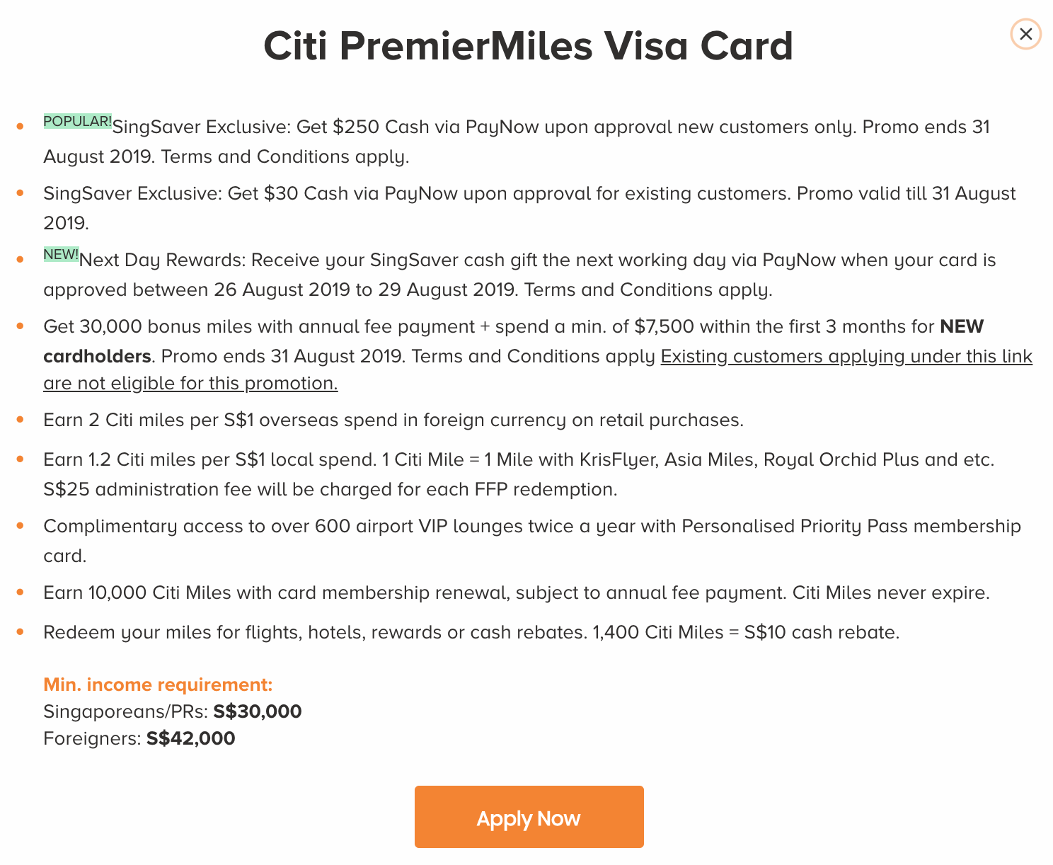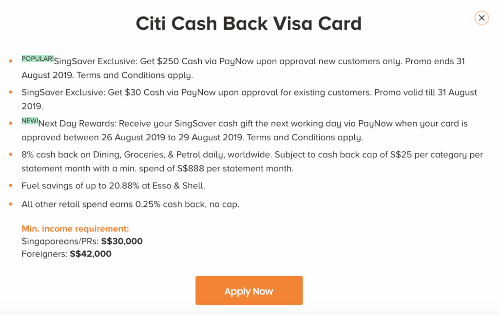 新客户福利:8月31日前申请可获得250新币Cash返现(via PayNow)
