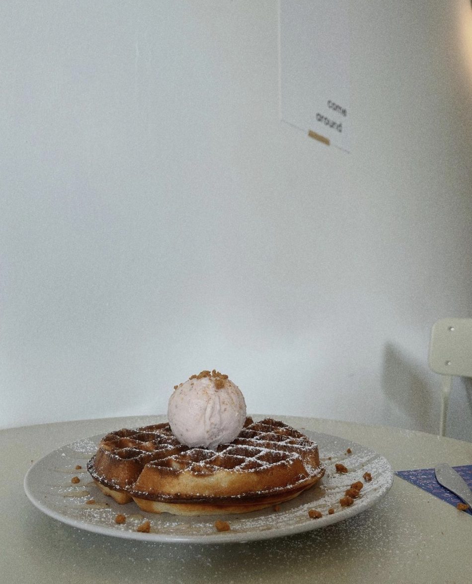搭配上店家特制的冰激凌和华夫饼