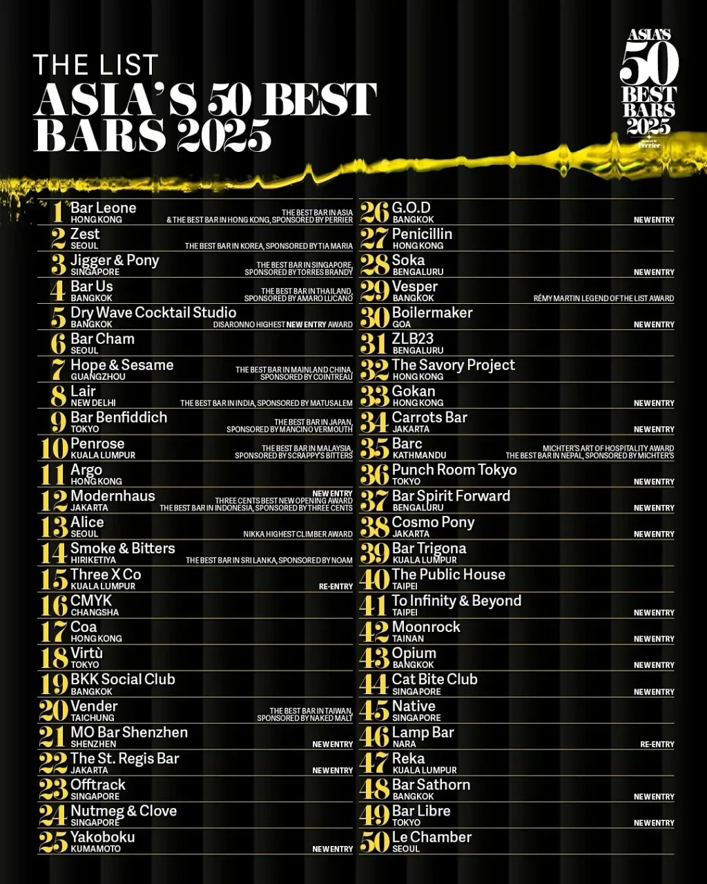 被誉为是亚洲酒吧最高殊荣的「亚洲50最佳酒吧」