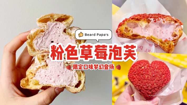 季节限定美食🤤 Beard Papa’s草莓爆浆泡芙来了~ 一口下去奶油直接在嘴里炸开!
