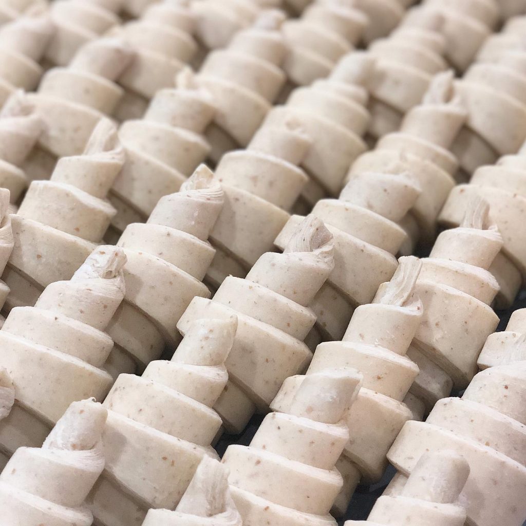 再切割、卷成牛角形状进行烘焙