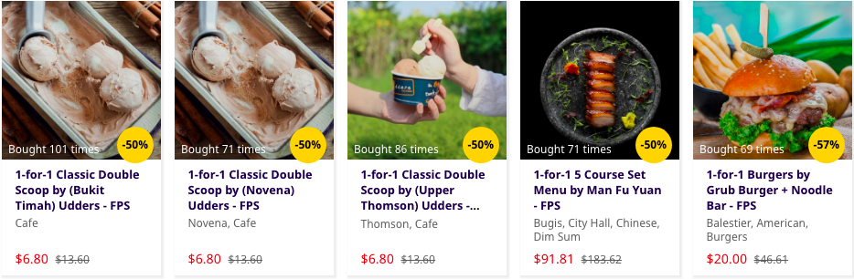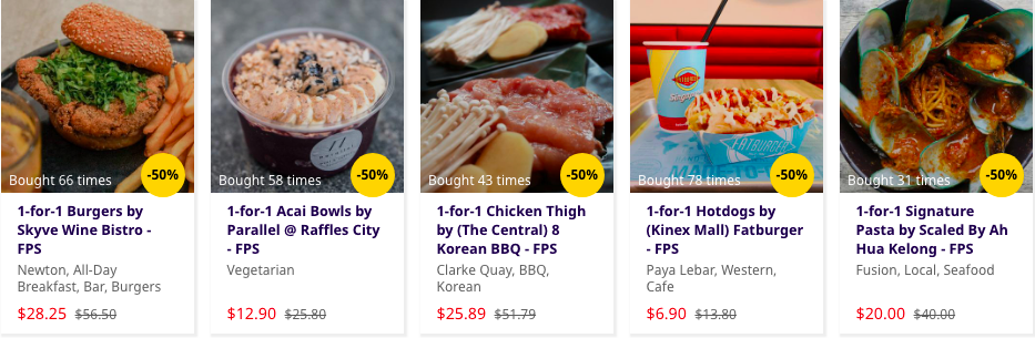 各种买一送一,五折现金券,还有1块钱好deal!