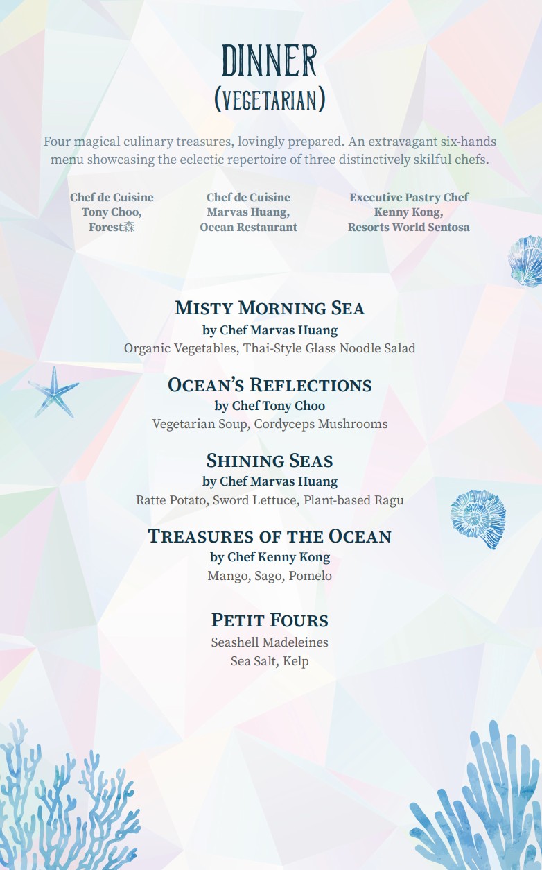 有多种菜单及素食、非海鲜菜单可选