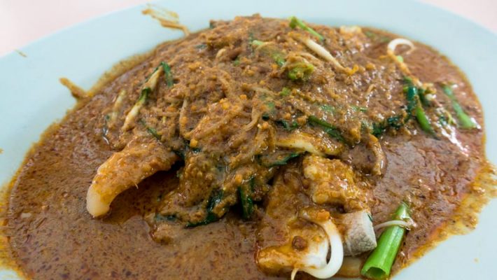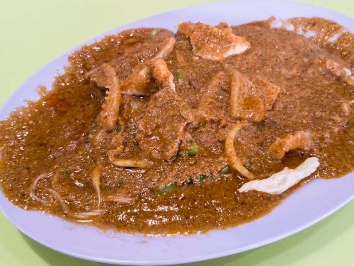 一口蘸满沙爹酱的米粉,再来一口富有弹性的新鲜鱿鱼,简直幸福到哭泣。