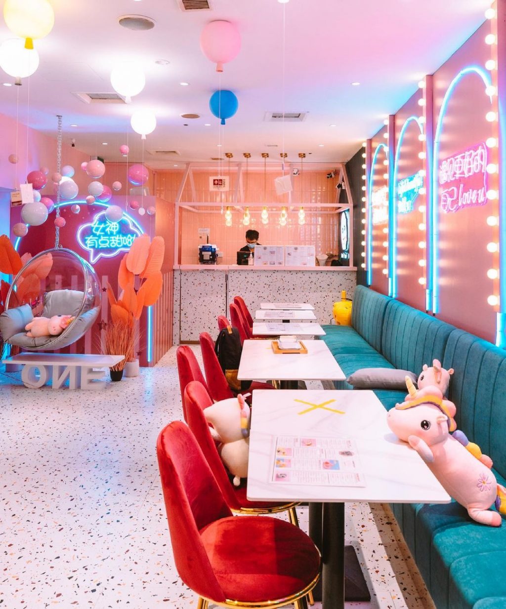 就连座椅和墙壁都以粉色为主!