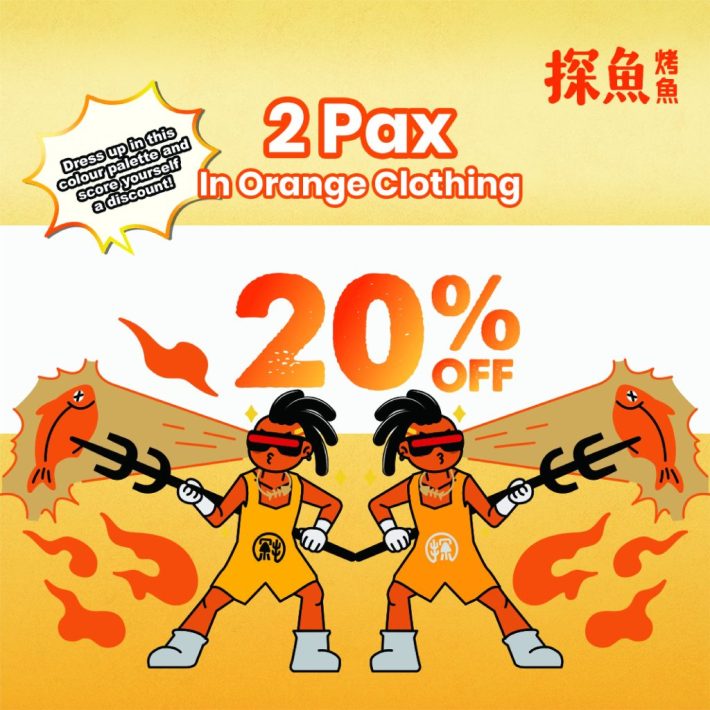 两人穿橙色衣服用餐,可享受20%off、