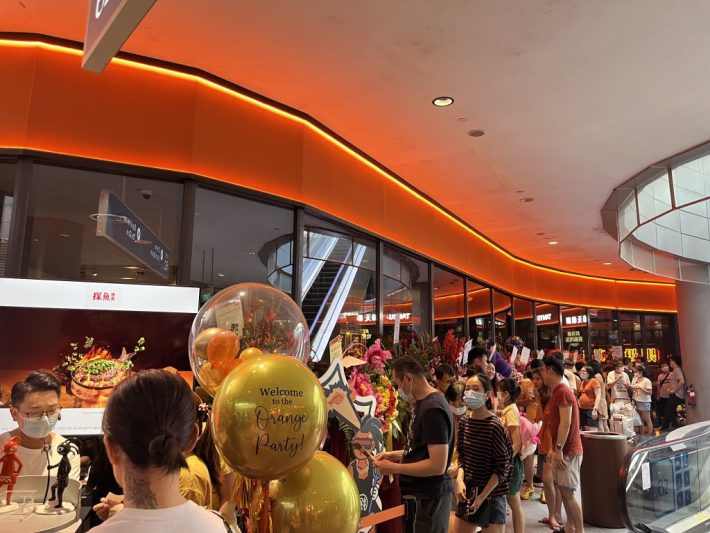 探鱼新店门口一片“橙色的海洋”