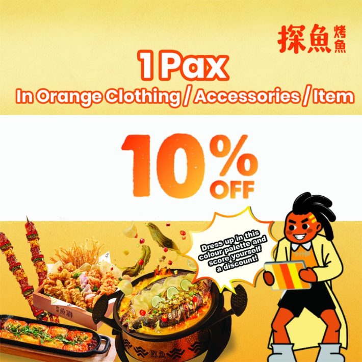 一人穿橙色衣服用餐,可享受10%off、