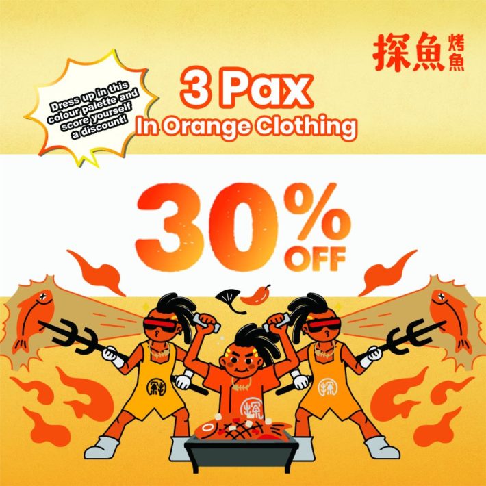五人穿橙色衣服用餐,可享受50%off!