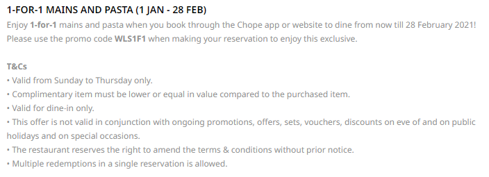 通过Chope订位可享优惠
