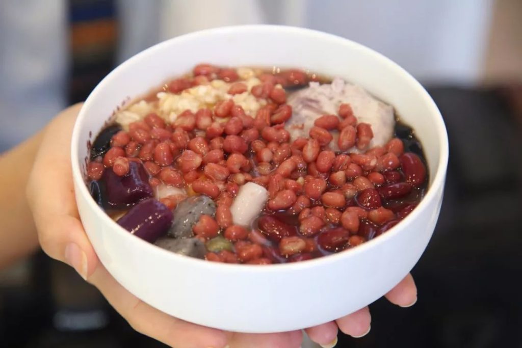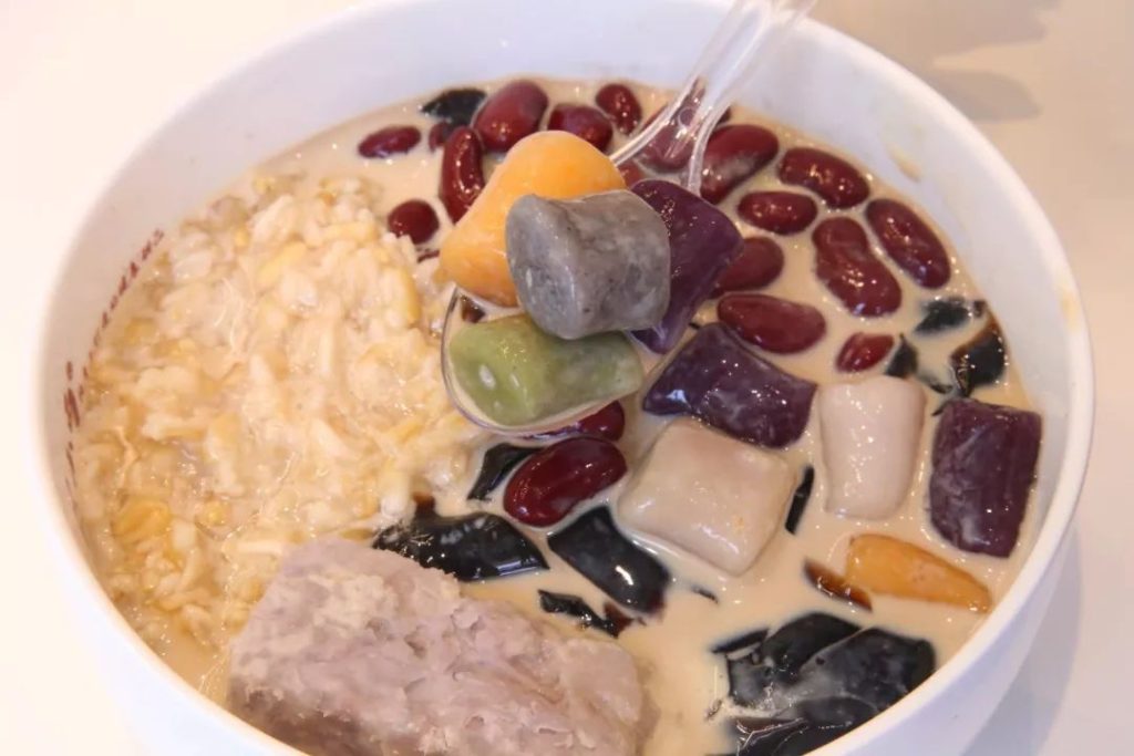 里头有仙草、芋圆、红豆、燕麦、花生、芋头…