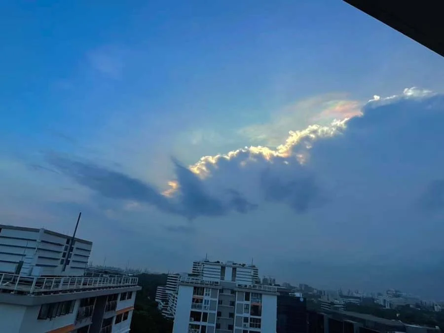新加坡的天空出现了罕见的七彩晚霞