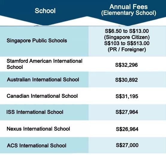 (考虑了补贴等因素,新加坡本地人小学免费,中学5-6新/月)