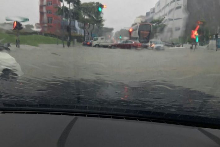 实拍:新加坡今早惊天大雨,四处可见车子在水中荡起双桨……