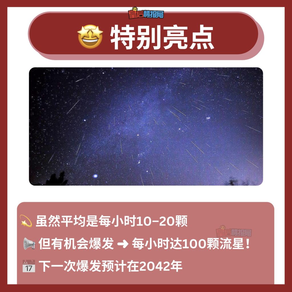 若天气晴朗,每小时可观赏到10至20颗流星🤩