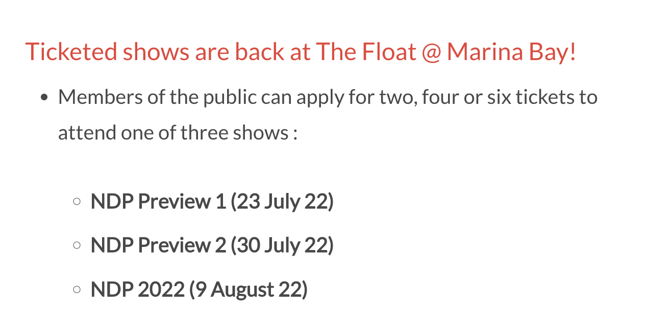 国庆日庆典今天中午开放申请入场门票🇸🇬!最多可一次性申请6张门票!