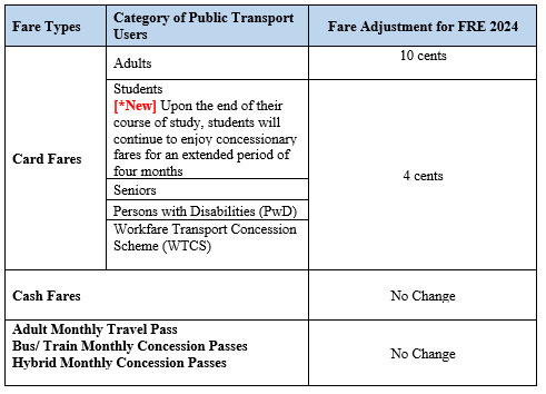 公共交通车资调整: