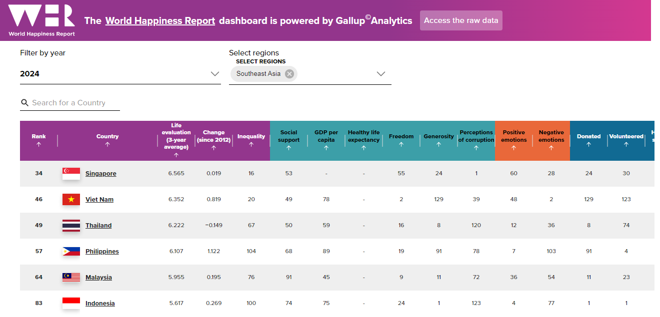 2024年世界幸福报告出炉😃新加坡的排名下滑四个位置,东南亚国家排第一🏆
