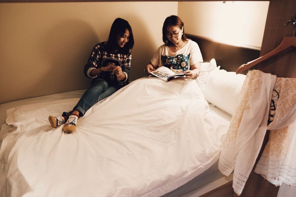 每间明亮而宽敞的空调宿舍间均提供带羽绒被和2个枕头的超大单人床位作为私人就寝区,提供通用电源插座、台灯和固定式个人储物柜。每张床亦配有隐私帘。
