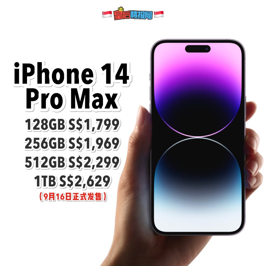📱iPhone 14 Pro Max(四款配色选择):S$1,799起