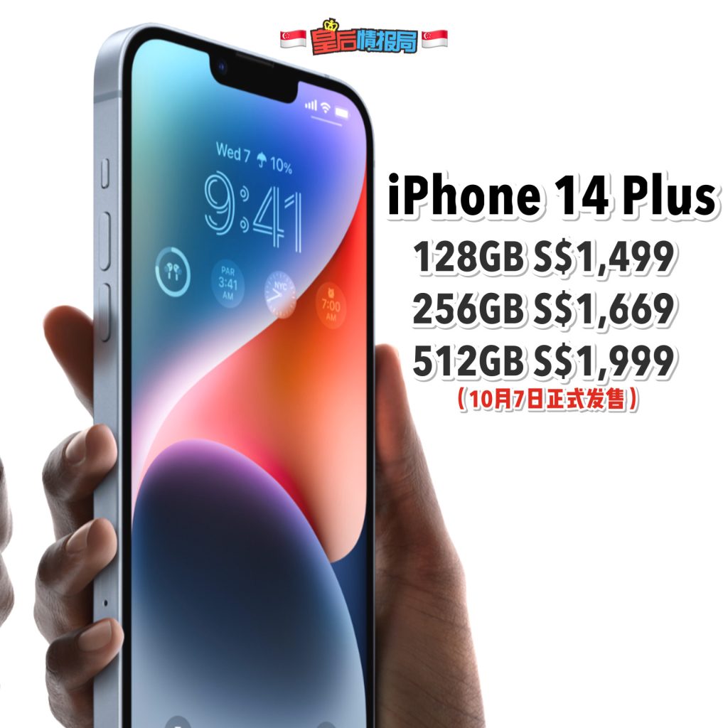 📱iPhone 14 Plus(五款配色选择):S$1,499起