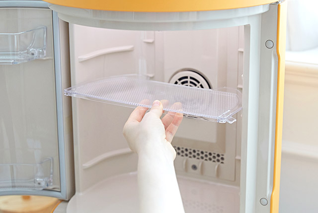 这款mini冰箱设计有两个冷藏室