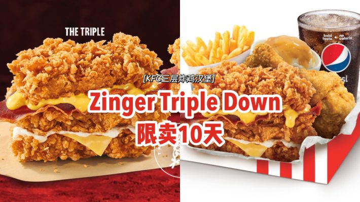 全岛上市!KFC新品「Cheesy Zinger Triple Down」🍔三层炸鸡汉堡、限卖10天‼