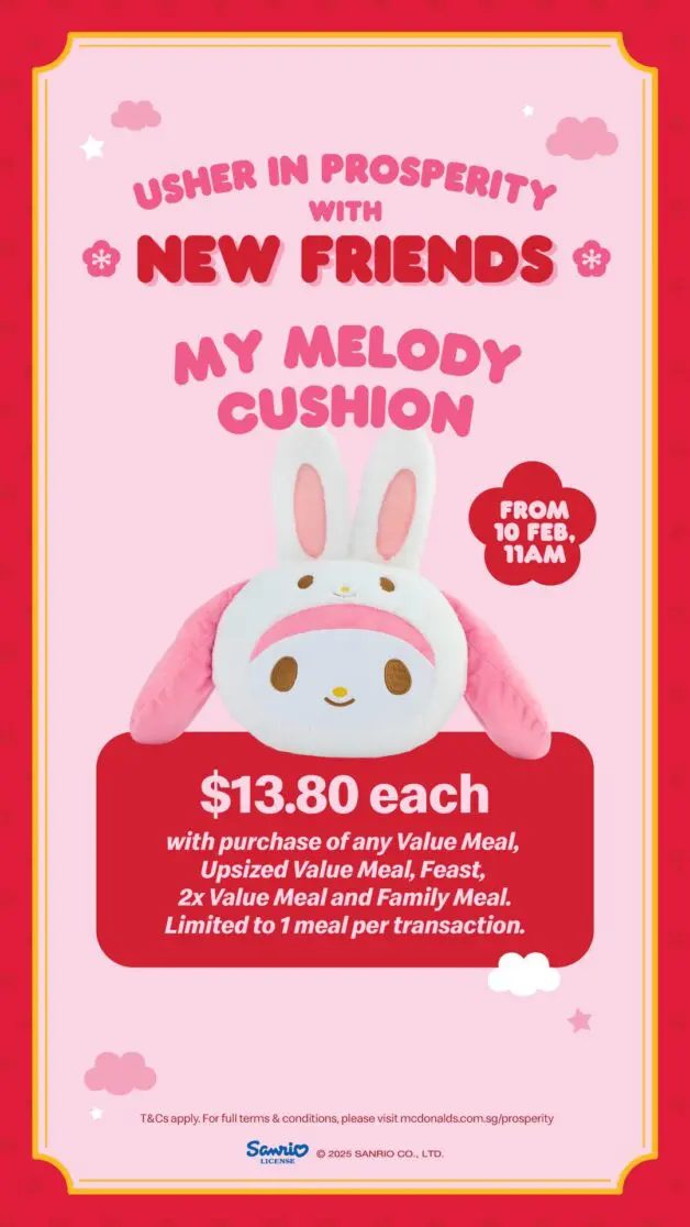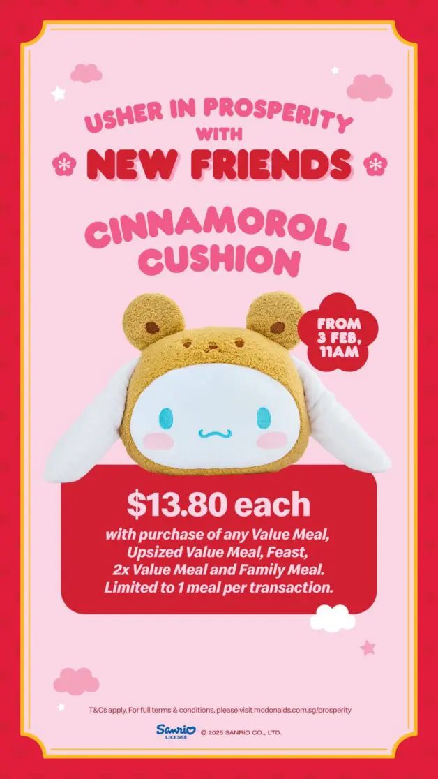麦当劳你真的很会!2月起随餐加购美乐蒂&玉桂狗抱枕💗独家设计、数量有限,记得冲!