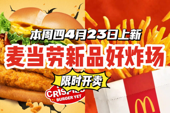 麦当劳新品好炸场!全新蜂蜜芥末McCrispy汉堡4月23日登场!新口味摇摇薯条、夕张蜜瓜冰淇淋同步开卖!