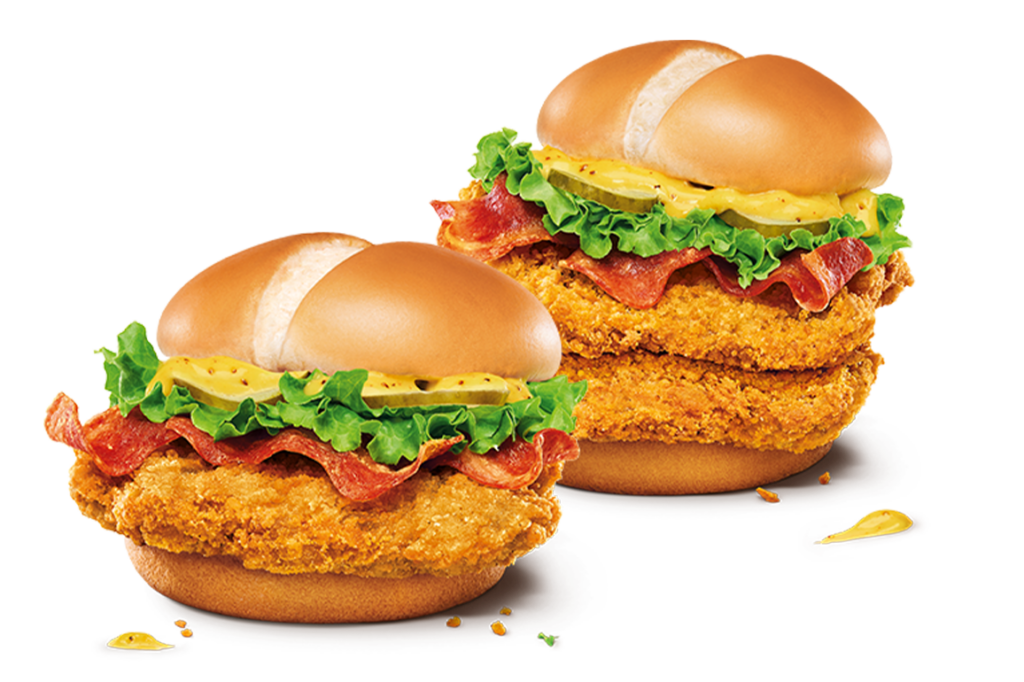 同样的脆皮鸡肉、培根和酸黄瓜🥒