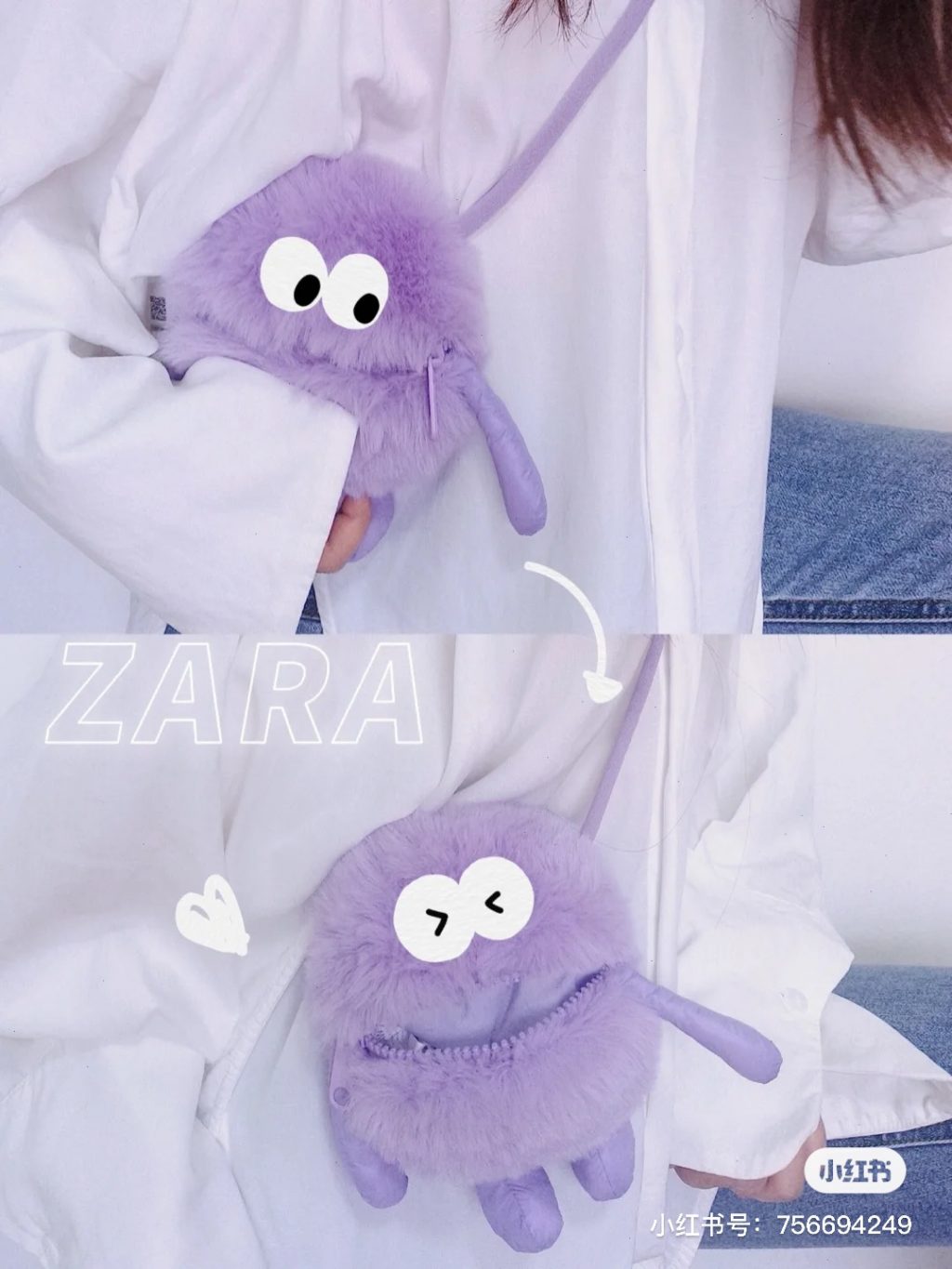 这款 ZARA 紫色小怪兽包包