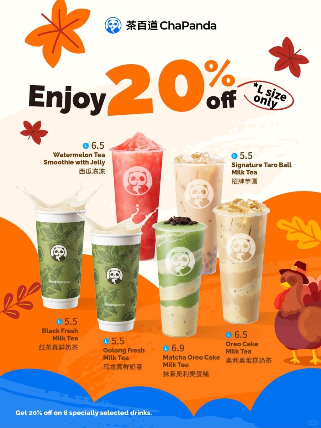 新加坡茶百道6款人气大杯任选,直接享20% OFF‼️