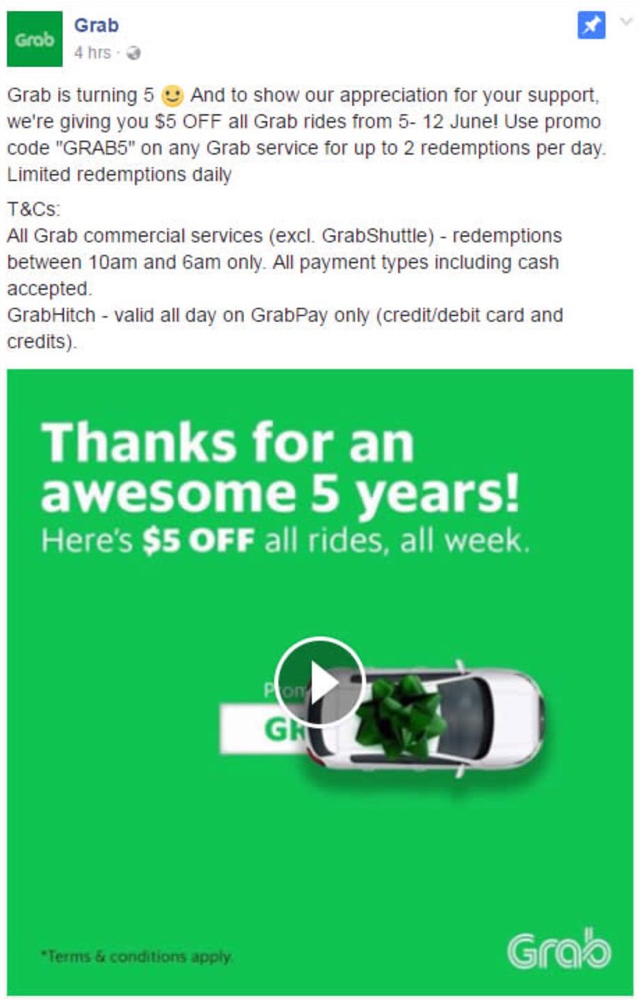 3. 所有Grab的服务减5新(GrabShuttle除外)