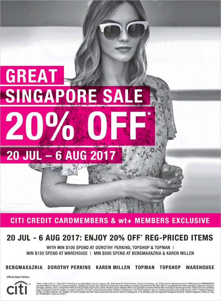 GSS已经进入了最high的阶段,即将结束。wt+作为旗下拥有诸多时尚快消品牌的集团,终于也舍得放点血。活动期间只要用Citi的信用卡付款,最低消费满$100起,就能拿到8折优惠,不同品牌的最低限额略有不同,想剁手的要看仔细喔~