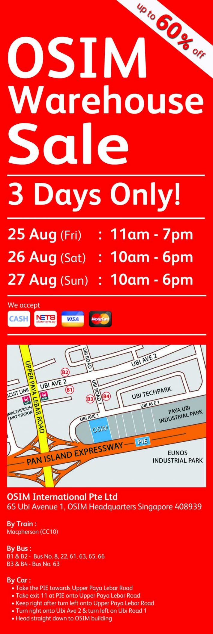 活动地点:65 Ubi Avenue 1, OSIM Headquarters, Singapore 408939