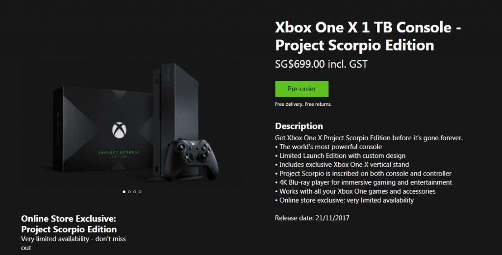 6. XBOX Project Scorpio限量版开始接受预订!