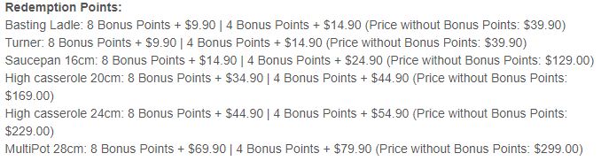 Bonus Point可以用来兑换WMF不锈钢厨具哦~